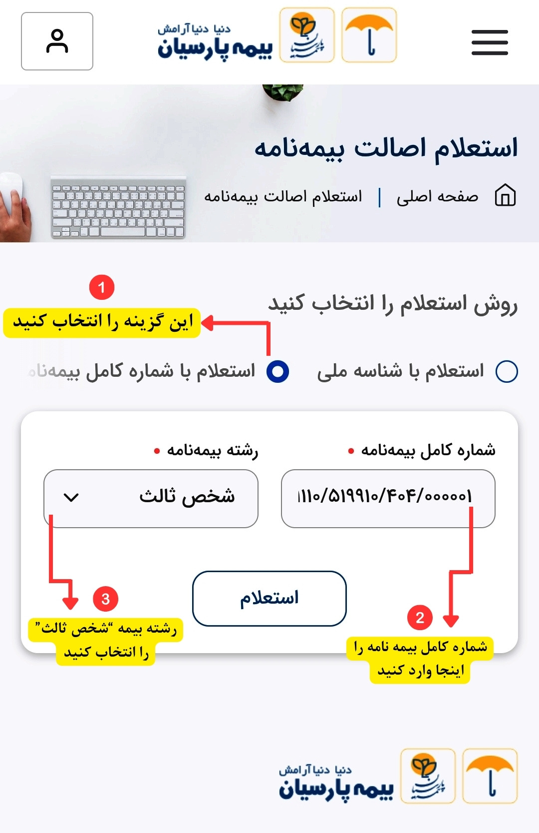 استعلام و چاپ بیمه نامه